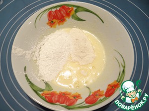 Добавляю к желтковой массе просеянную муку, щепотку ванилина, крахмал.