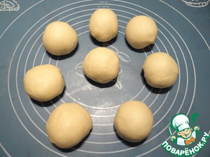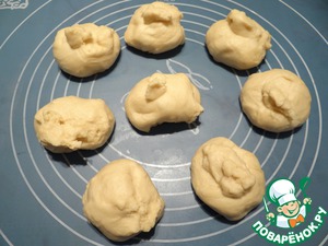 Формую из них шары - чуть расплющиваю кусочек теста, а потом защипываю края вместе.