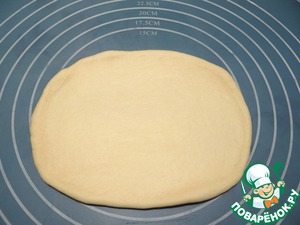 Беру один кусочек теста, раскатываю скалкой в овал,