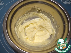 Хорошо взбиваю массу миксером до получения однородного и пышного крема. Крем можно чуть охладить в холодильнике, тогда украшения из него будут более выраженной формы.