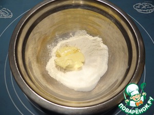 Готовлю штрейзель. Соединяю просеянную муку, сливочное масло комнатной температуры, сахар.
