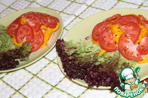 Затем тонкие ломтики помидора.