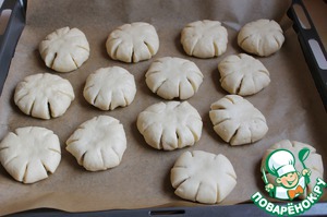 Вот такие примерно получаются у нас булочки мешочки. Ставим их в духовку на 10 минут, нагретую до 50градусов.