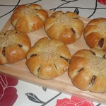 Когда они подымутся, смажем их яйцом взбитым и посыпем в середину кунжут.