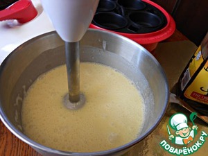 Далее действуем в соответствии с инструкцией к range mate: в кастрюльку наливаем стакан воды, устанавливаем прямо на неё прилагаемую форму-поддон для маффинов, разливаем в формочки приготовленное "тесто". У меня на одну заправку ушло ровно половина приготовленной смеси. Разливала половником от микроволновки: по два полных половника на одну формочку.