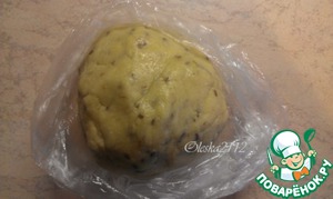 Получается вот такое тесто. Заворачиваем его в пищевую плёнку и помещаем в холодильник на 30 минут.