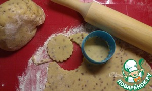 Через 30 минут раскатываем тесто скалкой и вырубками для печенья (а если их нет, то стаканчиком подходящего диаметра) вырезаем печенье.