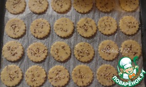 Выкладываем печенье на лист для выпечки, покрытый бумагой (для выпечки). Затем сбрызгиваем наше печенье водичкой, я для этого использую пульверизатор. И посыпаем сверху печенье зерновой смесью (немного). Если печенье водичкой не побрызгать, то посыпка зерновой смесью будет бесполезной, зёрнышки не закрепятся и осыпятся. Ставим наше печенье в разогретую духовку и выпекаем при 180*С 15-20 минут.