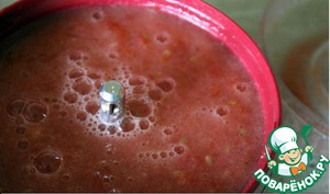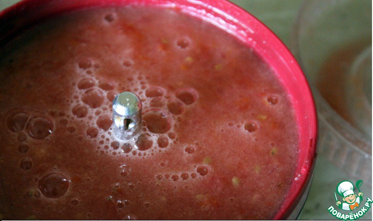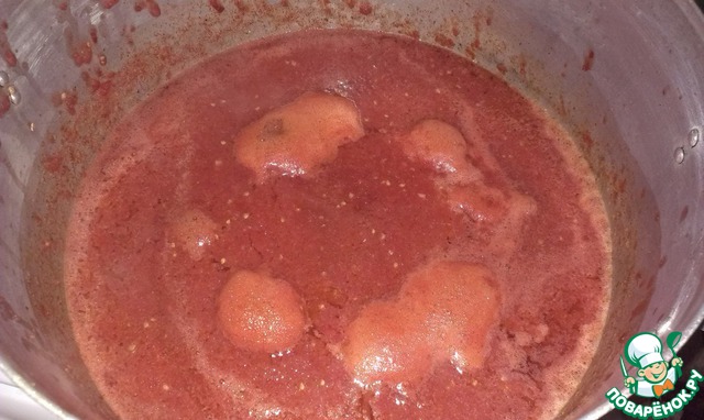 Перемолоть помидоры, вылить в кастрюлю и кипятить 20 мин. на среднем огне.