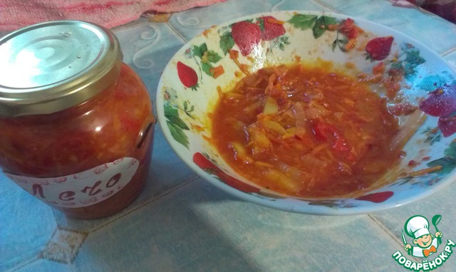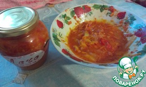 После добавить сладкий перец, морковь и лук. Я еще добавила чуточку приправ ( майоран, базилик, паприка ), но это на Ваш вкус. И дать этой массе покипеть минут 30- 40, а в это время при помешивании можно простерилизовать баночки. ( я стерилизую в микроволновке их ).