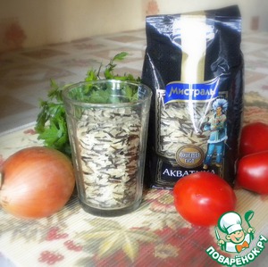 • В первую очередь ставим варить рис. У меня была вот такая смесь "Акватика mix" ТМ "Мистраль". При варке риса я руководствовалась инструкцией на пачке.