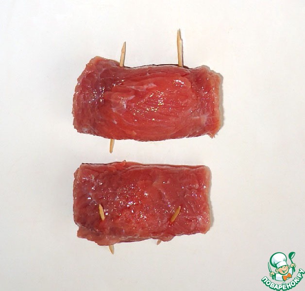 Свернуть рулетом, закрепить маленькими шпажками и отварить до готовности с добавлением соли.