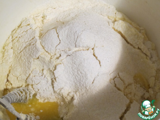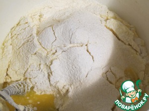 • Добавьте все сухие ингредиенты:Мука, Кукурузная мука, Разрыхлитель, Сахар, соль.