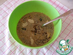 В теплую воду добавить кофе, сахар, дрожжи. Хорошо размешать до растворения, отставить в сторону минут на 5-10.