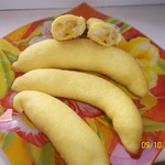 В моём старом рецепте в начинке соды и муки нет,поэтому начинка тает и бананчики получаются приплюснутыми