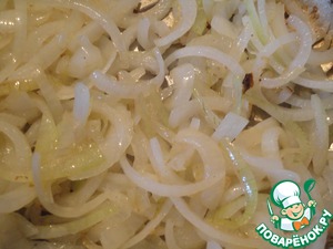 В это время на другой сковороде обжариваем лук сначала тоже без соли до прозрачности. Подсаливаем.
