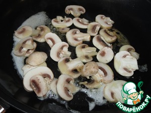 Растопить сливочное масло в сковороде. Выложить нарезанные грибы