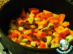 Тыкву, яблоки и изюм хорошо поджарить на растительном масле