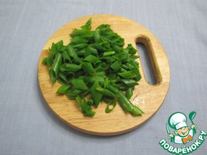 Зеленый лук порезать наискосок.