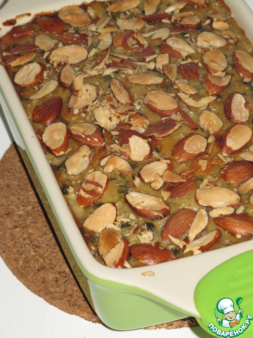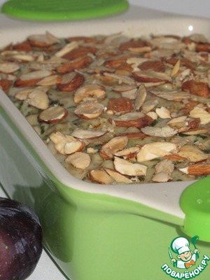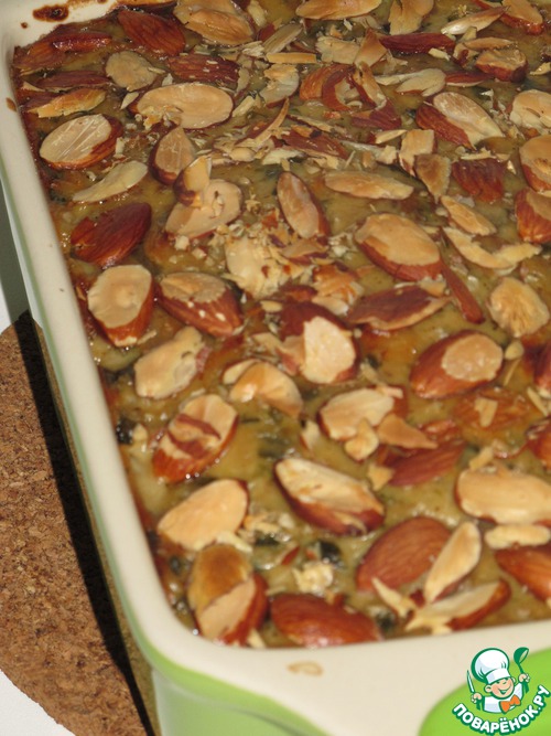 Сверху посыпьте нарезанным миндалем.
