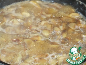 Добавьте грибы и тушите, пока не выкипит вода. Потом добавьте Херес и готовьте примерно 12 минут, пока половина жидкости не выкипит.