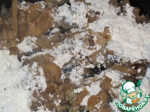 Потом нужно посыпать грибы мукой, и перемешайте.
