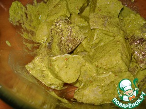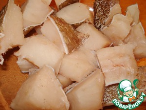 Я рыбку, конечно, разделала на филе, нарезала на кусочки (примерно 3х3 см).