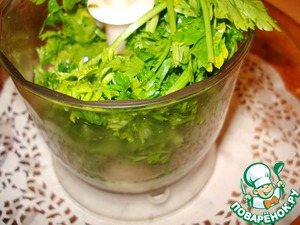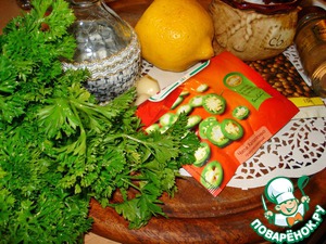 Из лимона выжала сок, чеснок измельчила, паприку, петрушку, кориандр, чили, щепотку соли, масло, все положила в чашу блендера.