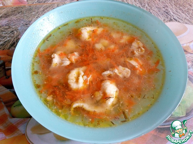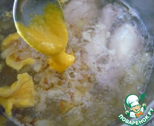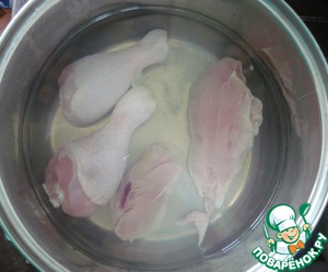 Сначала нужно сварить бульон. Я взяла куриное филе и 2 голени.