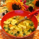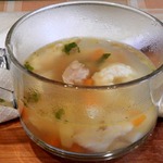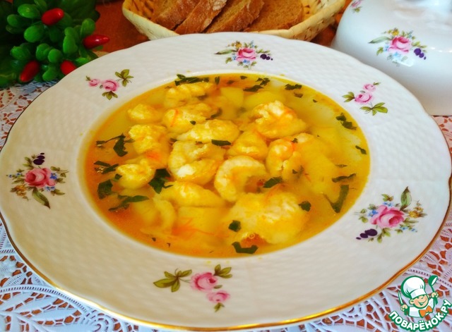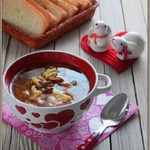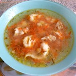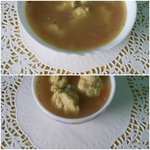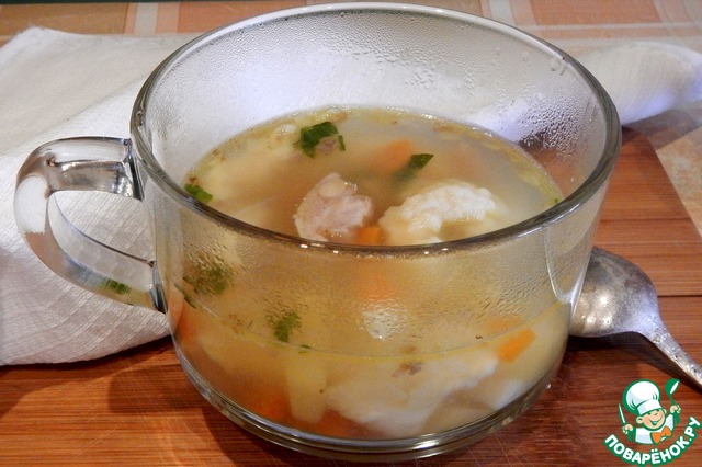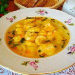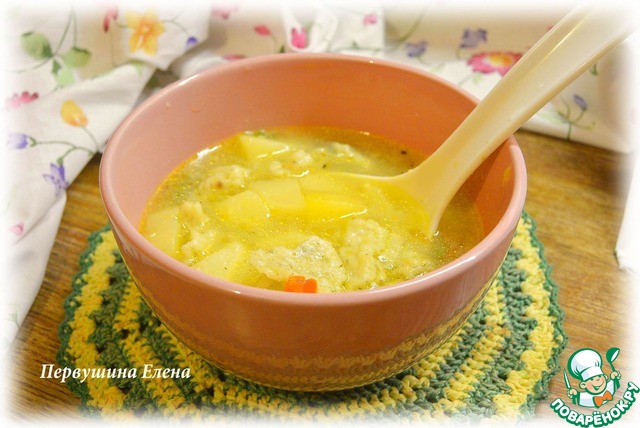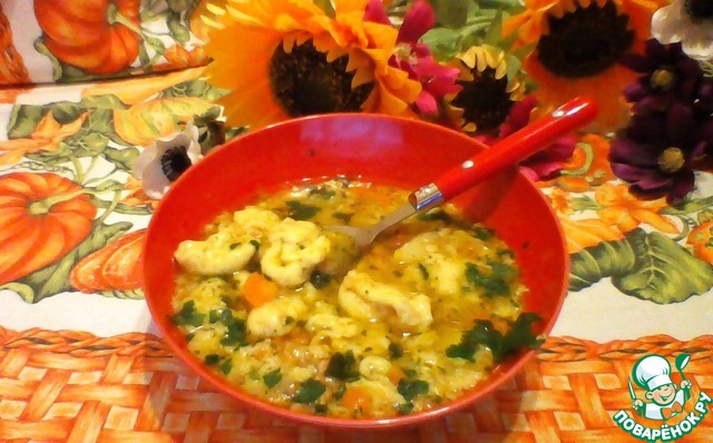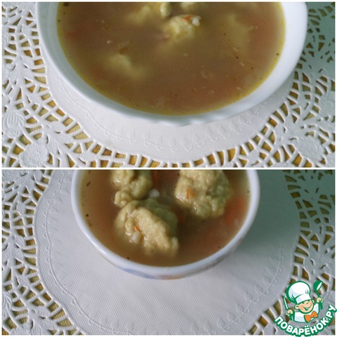 Когда и зажарка и галушки готовы, пробуем наш картофель, если сварился, то добавляем зажарку и набираем тесто по 1/4 ст. л. и опускаем в кипящий бульон.