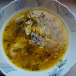 И вот когда уже наши галушки всплыли и готовы, выключаем. Можно поперчить или добавить еще какие-то специи, бросаем зелень ( у меня укроп и петрушка). Даем настоятся 10 мин. И можно подавать с домашней сметаной.