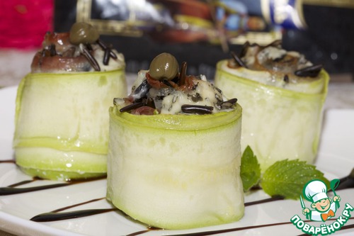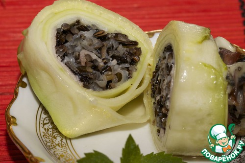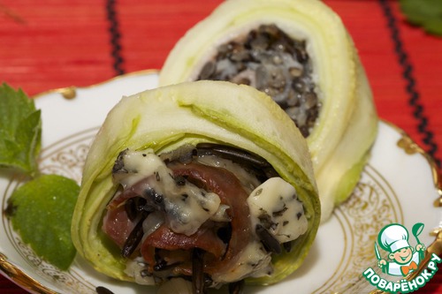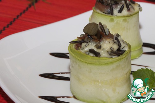 Это вкусная и сытная закуска. Сочность бекона окутывает собой дикий рис и растворяется в его аромате, а сочность молоденького кабачка придает ему нежность!