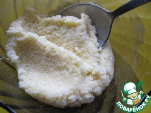 Измельченную кокосовую стружку смешать с сахарной пудрой и сливочным маслом.