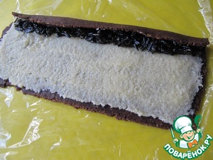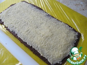 Нанести на шоколадный слой кокосовый крем, разровнять.