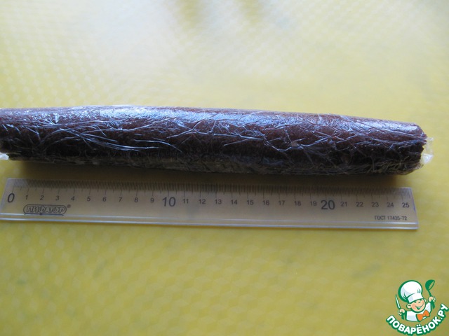 Положить на плоскую поверхность швом вниз, накрыть пленкой, убрать в холодильник минимум на 1 час.