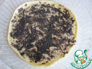 Форму смазать сливочным маслом. Выложить раскатанный лист теста. Смазать маковой начинкой (можно джемом, сахаром и корицей и др.). Маковую начинку я приготовила согласно инструкции. Для сладкоежек маковую начинку можно посыпать сахарной пудрой для большей сладости пирога!