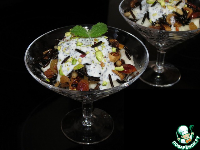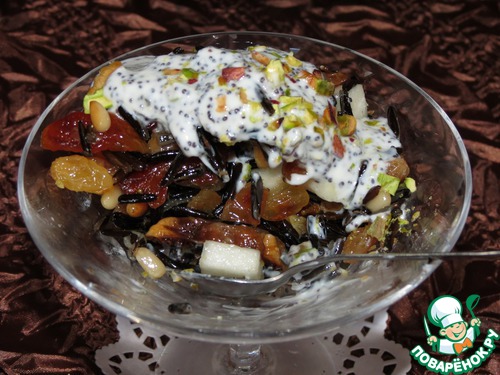 Хочу предложить свой вариант вкусного десерта с диким рисом. Удивил он меня ярким вкусом и быстротой приготовления. Салат с ярким контрастом цветов и необыкновенным вкусом украсит любой стол и удивит гостей присутствием дерзкого дикого риса с маковым соусом.