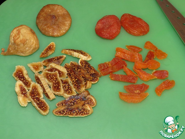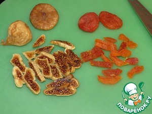 Инжир, курагу режем на полоски.