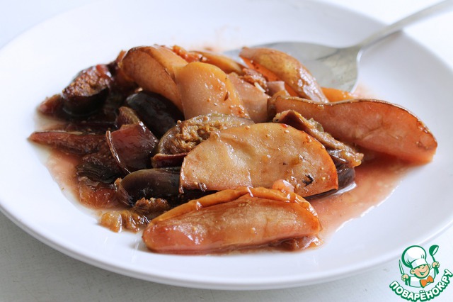 Этот шаг не обязателен, но может быть кому-то понравится. Часть запеченных фруктов я остудила и измельчила при помощи блендера.