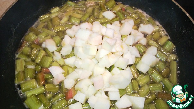 Добавляем ревень и масло.