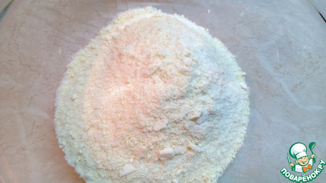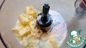В комбайне или блендере смешать муку, сливочное холодное масло и сахарную пудру.