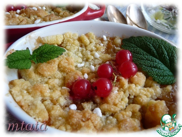 "Крамбл - британский десерт, который готовится из ягод или фруктов. Фрукты смешиваются с сахаром, сверху выкладывается крошка из теста, затем все запекается в духовке. Получаются ароматные фрукты с хрустящей-карамельной корочкой." Попробуйте!