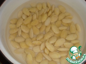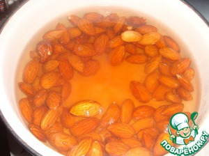 Очистить миндаль от шкурки. Для этого залить его кипятком на 10 минут.