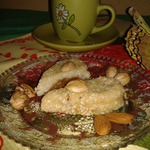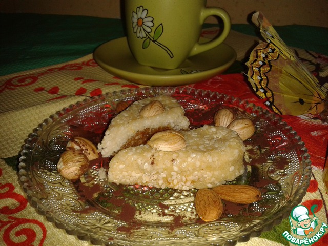Пирожных "Аджуа" с начинкой из фиников. Ты знаешь, мои гости эти пирожные в первую очередь съели. И деткам так понравились. Хотя на столе и торт был, и конфеты.