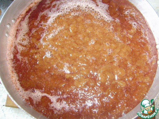 • Теперь всю эту перетертую красоту ставим на огонь и варим 10 минут. Сразу оговорюсь, что я не добивалась густого мармелада. Это жидкое варенье, но вы можете попробовать уварить, только так полезней. Я всегда варю варенье не больше 30 минут.