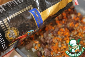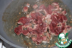• Баранину мелко нарезать, обжарить на растительном масле. Для себя я делала без мяса. Было тоже очень вкусно)))