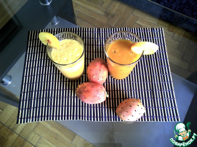 Для первого варианта, положить в блендер 4 опунции и 4 кубика льда, пюрировать. Готовый смузи налить в стакан.