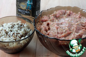 Всыпать отварной рис и еще раз хорошо перемешать. Теперь разогрейте сковороду, слепите маленькую котлетку из фарша и поджарьте до готовности, снимите пробу и, если нужно, выровняйте вкус будущего мясного хлеба.
