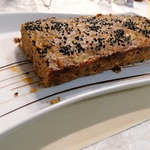 Прямоугольную форму смажьте сливочным маслом и плотно заполните фаршем. Посыпьте кунжутом.