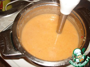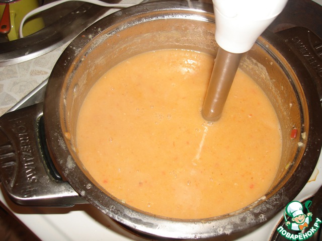 Пришло время воспользоваться чудо агрегатом, именуемым блендером:) пюрируем, при необходимости подливаем бульон из чашки до нужной консистенции.